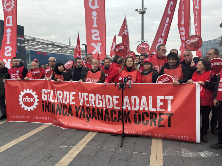Kent Meydanı'nda yapılan açıklamada konuşan DİSK Genel Başkanı Arzu Çerkezoğlu, "Gelirde adalet talebi, vergide adalet talebi, insanca yaşayacak bir ücret talebi milyonların meselesidir, milyonların talebidir. O nedenle bu yürüyüş milyonların yürüyüşüdür. Bu yürüyüş memleketin ülkenin geleceğini yeniden kurma yürüyüşüdür. Bugün asgari ücret Türkiye'de bir ortalama ücret. Çalışanların yarısından fazlası asgari ücretle hayatını sürdürmeye çalışıyor. Ortalama ücret haline gelmiş olan asgari ücretin belirlenmesi süreci hep söylediğimiz gibi devletin toplumla yaptığı en büyük toplu sözleşme sürecidir. Ama bugün asgari ücreti belirleyenler yıllardır asgari ücret tespit komisyonu masasında işçilerin bulunmamasını bir sorun olarak bile görmemektedir. Çalışma Bakanlığının ağzından dökülen o sözler bugün ülkeyi yöneten iktidarın zihniyetini göstermektedir. Çalışma Bakanlığı'nın ağzından dökülen o sözler 23 yıldır bu ülkeyi yöneten AKP iktidarının işçiye, emekçiye, halka, topluma nasıl baktığını göstermektedir. Yani bizleri yok sayan, bu ülkenin tüm değerlerini ve güzelliklerini üretenleri yok sayan ve attıkları adımda, her politikasında tek amaçlarının kurdukları bu düzeni yani tüm çarkları işçiden alıp patrona vermek için yoksuldan alıp zengine vermek için dönen bu düzenin çarklarını devam ettirmek içindir” dedi.