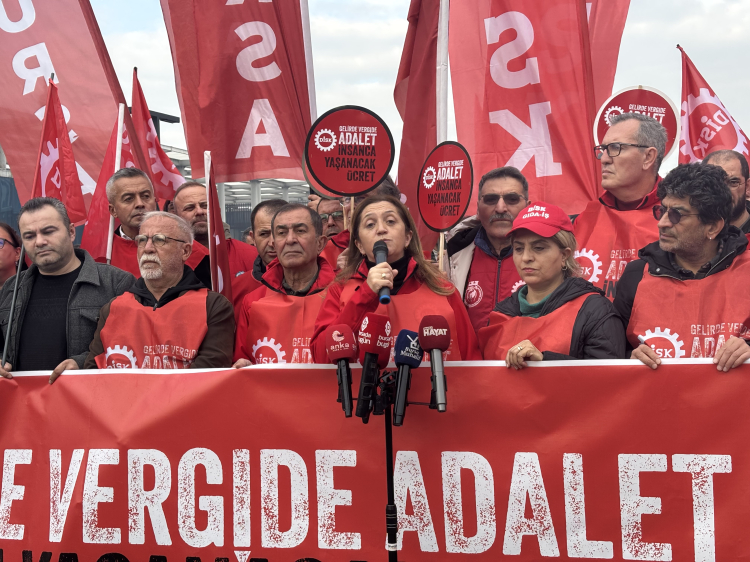 Gelirde adalet vergide adalet talebimiz var. Dünyanın en adaletsiz vergi sistemi Türkiye'de. Türkiye'yi patronundan daha çok vergi veren işçilerin ülkesi haline getirdiler. Bu ülkede patronlar canı istediği zaman vergi veriyor, canı istediği kadar vergi veriyor. Ama bizler emekçiler daha ücretimizi almadan peşin peşin vergi ödüyoruz. Dünyada başka bir ülke yok ki işçilerin, emekçilerin ücreti aylar geçtikçe yıl içerisinde artmak yerine düşsün. Vergi dilimleri nedeniyle ödediğimiz vergi yükü nedeniyle aldığımız ücretler sürekli azalıyor. Ocakta aldığımızı Mayıs'ta, Mayıs'ta aldığımızı Ağustos'ta, Eylül'de alamıyoruz. Oysa anayasa da çok açık. Herkes gelirine göre vergi vermelidir der. O nedenle az kazanandan az, çok kazanandan çok vergi alınan adil bir vergi sistemi için yürüyoruz. Bu ülkede emekliler asgari ücrete bile, o 22.104 lira açlık sınırının altındaki asgari ücrete bile hasret hale getirildi. 16.000 lira en düşük emekli aileyle yaşamaya mahkum edilen milyonlarca emekli var bu ülkede. O nedenle emeklilikte adalet için yürüyoruz. Emeklilikte insanca yaşam için yürüyoruz. En düşük emekli aylığının en azından asgari ücret düzeyine yükseltilmesi ve bütün emekli aylıklarının arttırılması için yürüyoruz. Bu talepler milyonların talebi, bu talepler bu ülkenin tüm değerlerini üretenlerin talebi. Bu talepleri Ankara'ya götürüyoruz. Anlımızın teriyle çalışıyoruz. Kimseden sadaka istemiyoruz. Hakkımız olanı istiyoruz. Hakkımız olanı alana kadar da hep birlikte mücadeleyi devam ettireceğiz.”