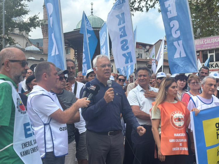 Eylemde söz alan CHP Bursa Milletvekili Orhan Sarıbal, “Faize para var, saltanata var ama emekçiye yok. Bu bir tercihtir, adı da Recep Tayyip Erdoğan ve Mehmet Şimşek’tir.Sürdüremedikleri düzeni baskı ve şiddetle dayatıyorlar. Biz emekçilerin yanındayız, dayanışma ve ortak mücadeleden vazgeçmeyeceğiz” dedi.