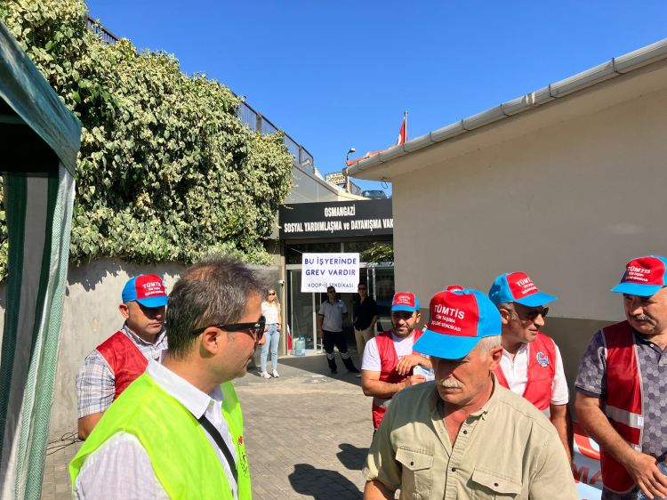 Devletin protokoldeki artış yerine memurlara verilen yüzde 11+7 oranını dayatmasına tepki gösteren Türkiye genelinde bin 3 kurumda çalışan yaklaşık 10 bin işçi grev kararını uygulamıştı. Osmangazi Sosyal Yardımlaşma Vakfı önünde grevde olan Koop-İş üyesi işçilere destek ziyaretleri sürüyor.