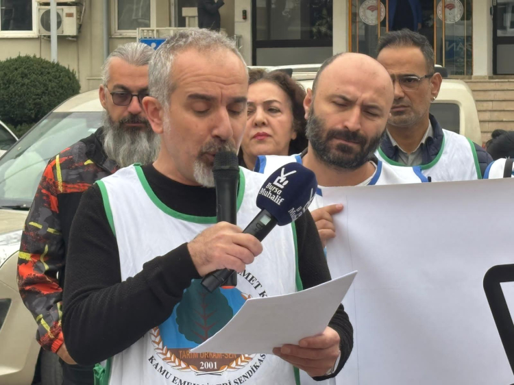 Bursa İl Tarım ve Orman Müdürlüğü önünde yapılan açıklamayı Tarım Orkam-Sen Bursa Şube Başkanı Tarık Efe okudu.