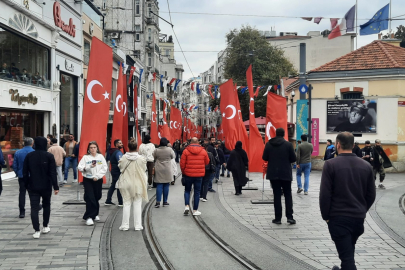 İstiklal Caddesi’nde 6 kişinin hayatını kaybettiği, 81 kişinin yaralandığı bombalı saldırının ardından bölgeye Türk bayrakları asıldı.