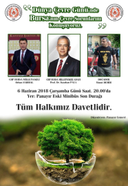 5 Haziran Dünya Çevre Günü kapsamında Panayır Cemevi tarafından 6 Haziran Çarşamba günü saat 20.00'da Panayır eski minibüs son durağında "Dünya çevre günü'nde Bursa'nın çevre sorunları" adlı bir panel düzenkeyecek.