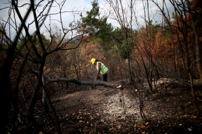 Bursa'da uyuşturucu bağımlısının küle dönmesine sebebiyet verdiği 14 hektarlık ormanlık alandaki 2 bin 284 ağacın yerine 22 bin fidan dikilecek. Oman işçileri, yanan ağaçları tek tek keserek alanı temizliyor.