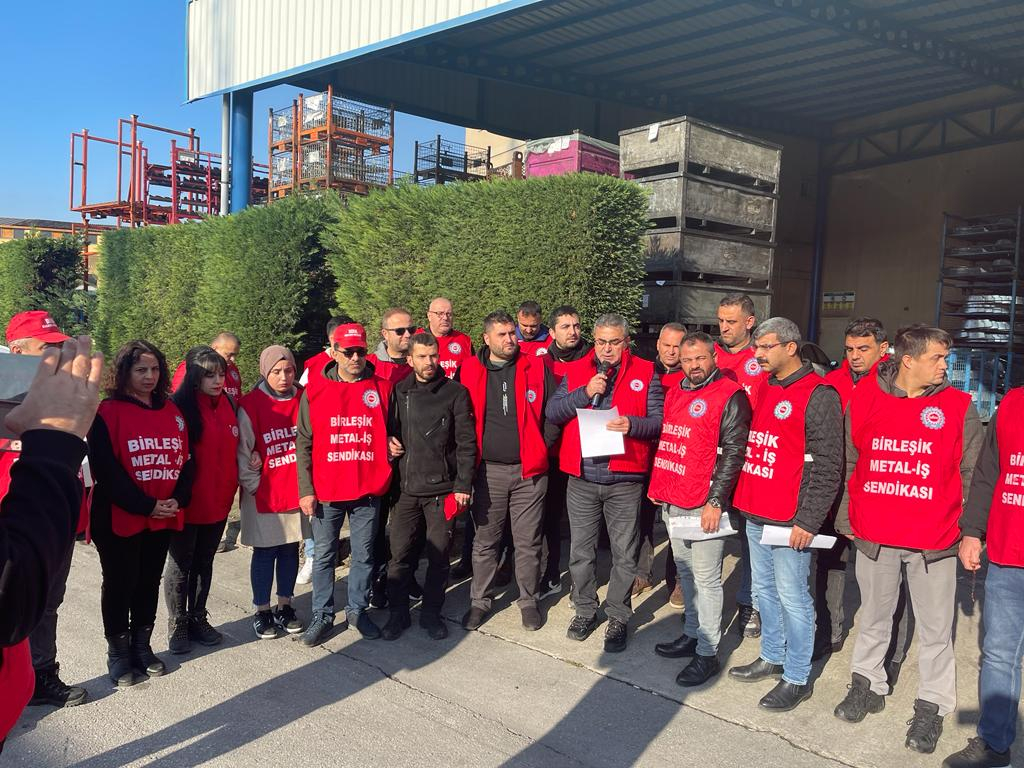 Birleşik Metal-İş üyesi metal işçileri sabah fabrika önünde toplanarak 21 Aralık’ta greve çıkacaklarını fabrikaya astı.