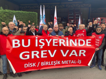 Birleşik Metal-İş Bursa Şubesi, örgütlü olduğu Şahinkul fabrikasında TİS görüşmelerinin tıkanması üzerine bugün fabrikaya grev pankartını astı.