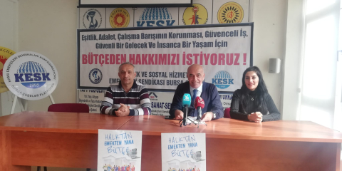 SES Bursa Şubesi güvenli bir gelecek ve insanca bir yaşam için bütçeden hakkımızı istiyoruz demek için basın toplantısı düzenledi.