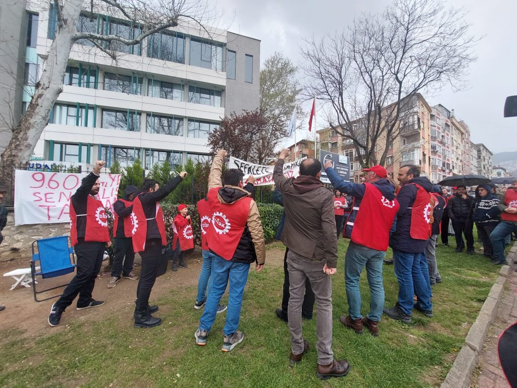 Hakeme gitti mesele. Hakeme gittikten sonra da yaklaşık bir iki aylık süreç var. Muhtemelen bu ayın ortasına doğru hakem karar çıkacak. Ancak burada esas önemli nokta şu. Bundan önceki 4 aylık süreç bizim açımızdan kötü işliyordu. İşçi arkadaşlar haydi bir şey yapalım noktasındaydı. Şimdi süreç onlara geri sardı. Eğer hakemden 9 bin 600 lira çıkarsa o ücrete burada çalıştıracakları işçi bulamayacaklar. Bunun farkındalar. Dolayısıyla onlar çalışacakları adamı bulamadıkları için bu sefer müdürleri aracılığıyla ‘biz sendikaya 10 bin 600 lira para teklif ettik, sendika kabul etmedi’ diyorlar. Doğrudur etmedik. Bizim istediğimiz rakamlar belli. Bize söylenen sözler var. O sözlerin arkasında dursunlar. Asgari ücretin 1.35 katı bu seneki isteğimiz. Hakemden pazartesi günü 9 bin 600 diye karar çıkarsa buyursun çalıştırsınlar. Daha bizde bir şey yok, işçinin sözü bu. Buyursunlar, 9 bin 600 liraya Türkiye’nin 21 dağıtım bölgesindeki en ucuz, en niteliksiz işçi ücretiyle buyursun çalıştırsınlar bu işçileri. Burada da bu sendika varken… Haydi, hodri meydan.”