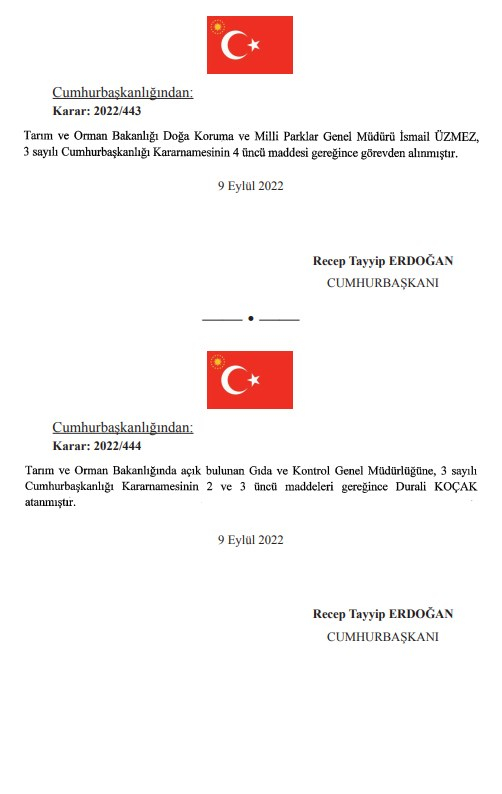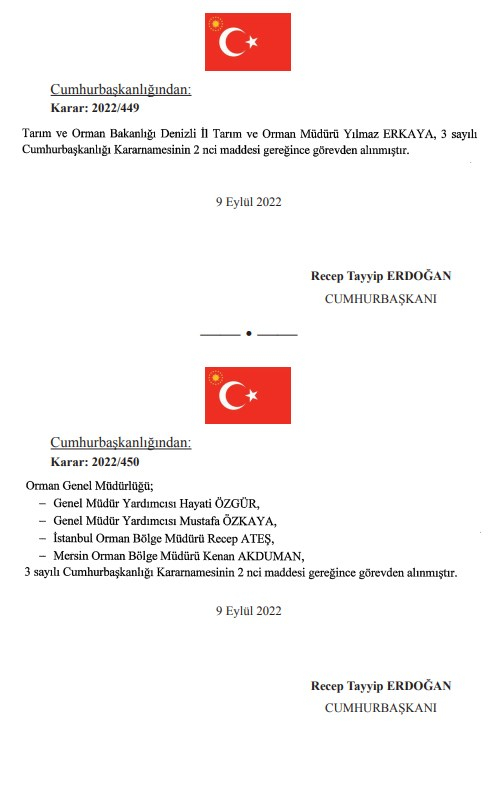 Doğa Koruma ve Milli Parklar Genel Müdürü İsmail Üzmez ve İstanbul Orman Bölge Müdürü Recep Ateş de görevden alınanlar arasında.