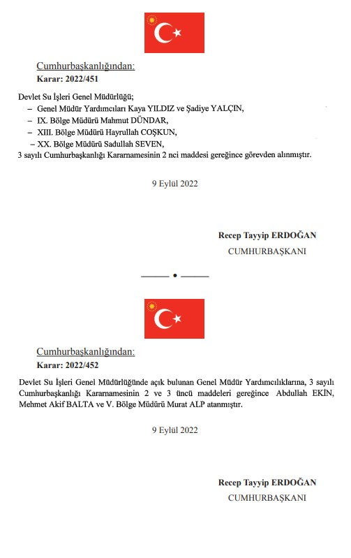 Atama ve görevden almalar şöyle: