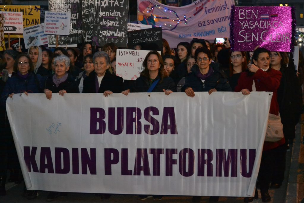Kent Meydanı'nda tamamlanan yürüyüşün ardından Kahramanmaraş depremlerinde hayatını kaybeden 46 binden fazla insan için mum yakıldı. Bursa Kadın Platformu tarafından burada bir basın açıklaması yapıldı.
