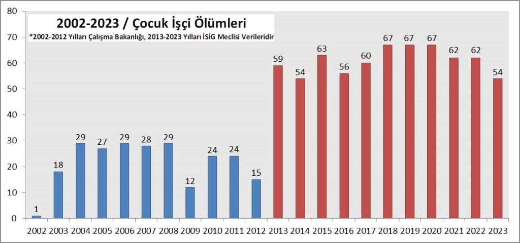 Çalışma Bakanlığı’nın bu açıklamalarına 2013 yılı ile birlikte tutulan İSİG Meclisi verilerini de eklediğimizde “AKP’li yıllarda en az 907 çocuk işçi hayatını kaybetti.”