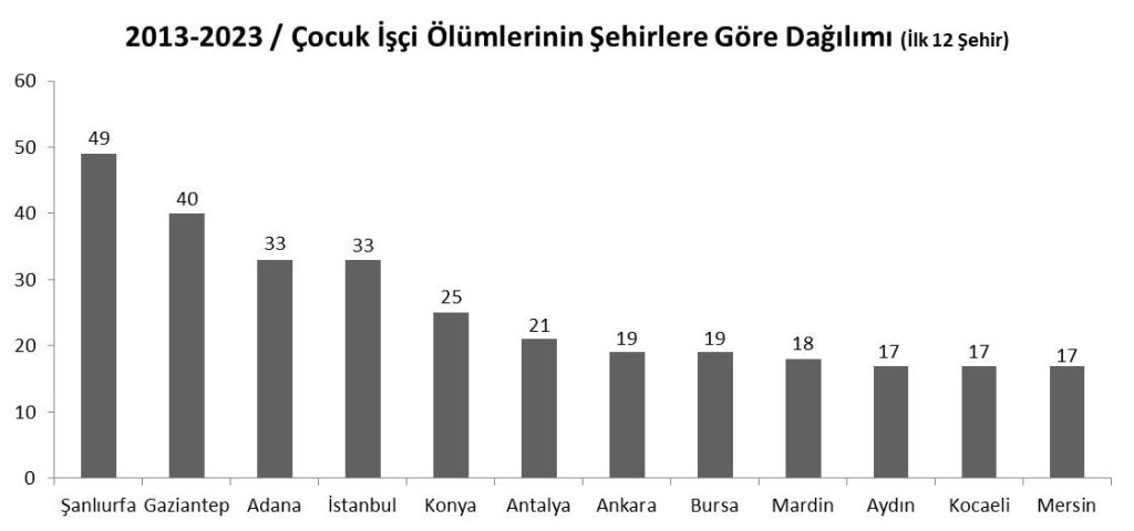 • En çok çocuk işçi ölümünün meydana geldiği şehir Şanlıurfa’dır. Ayrıca diğer şehirlerde ölen mevsimlik çocuk işçilerinde de memleket olarak ilk sırada Şanlıurfalılar vardır.