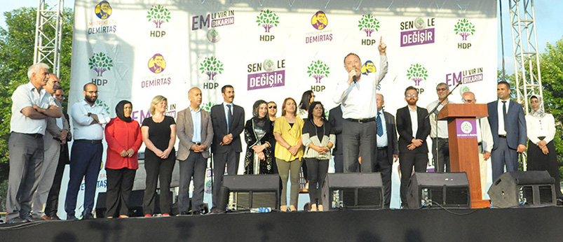 Milletvekili adaylarının konuşmasından sonra sahneye çıkan HDP Eş Genel Başkanı Sezai Temelli; “Çok az kaldı 24 Haziranda, yani 1 hafta sonra hep birlikte bugün olduğu gibi bir bayram kutlayacağız, demokrasi bayramını kutlayacağız” diyerek halkı selamladı.