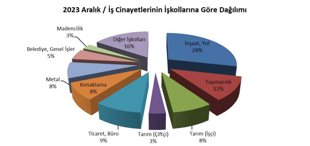 Aralık ayında iş cinayetlerinin işkollarına göre dağılımı şöyle: