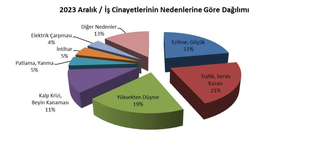 Aralık ayında iş cinayetlerinin nedenlerine göre dağılımı şöyle: