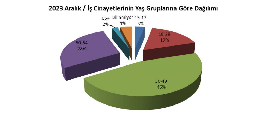 Aralık ayında iş cinayetlerinin yaş gruplarına göre dağılımı şöyle: