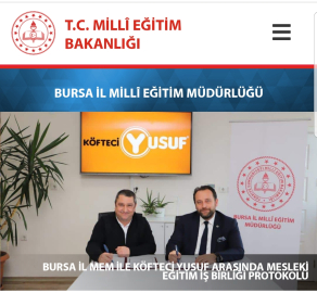 Milli Eğitim Bakanı, işletmelerin ihtiyacını karşılamaktan dolayı duyduğu mutluluğu paylaşırken, Bursa İl Milli Eğitim Müdürü de Köfteci Yusuf ile protokol anlaşmasına imza attı.