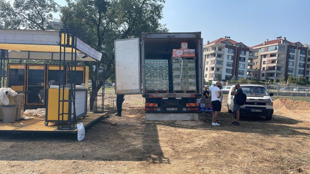 Yapılan açıklamalar sonrası, Nilüfer Müzik Festivali’nde içki satışı yapacak firma yetkilileri ürünlerini iade etmek için araçlara yükledi.