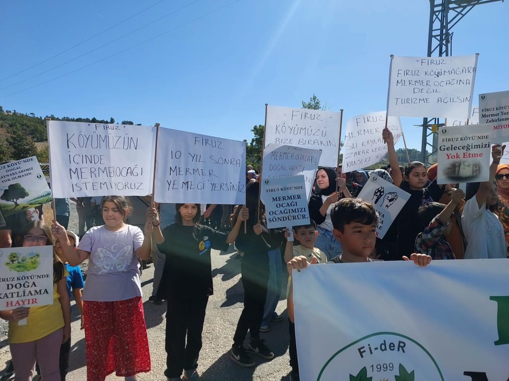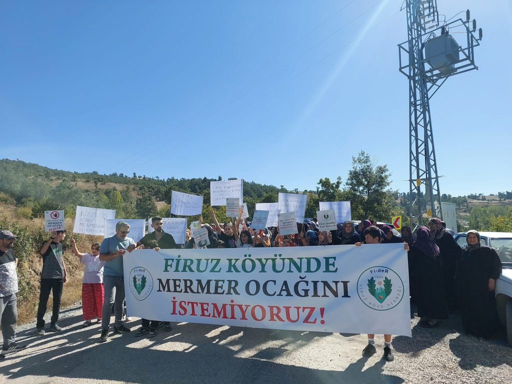 Firuzköy’de kurulması planlanan mermer ocağı alanına sabah saatlerinde gelen köy halkı 7’den 70’e birlikte yürüyerek eylem yaptı. “Mermer ocağı istemiyoruz” sloganları atan köylüler, söz konusu madencilik faaliyetiyle köyde sağlıklı ve doğal yaşamın yok olacağını belirtti.