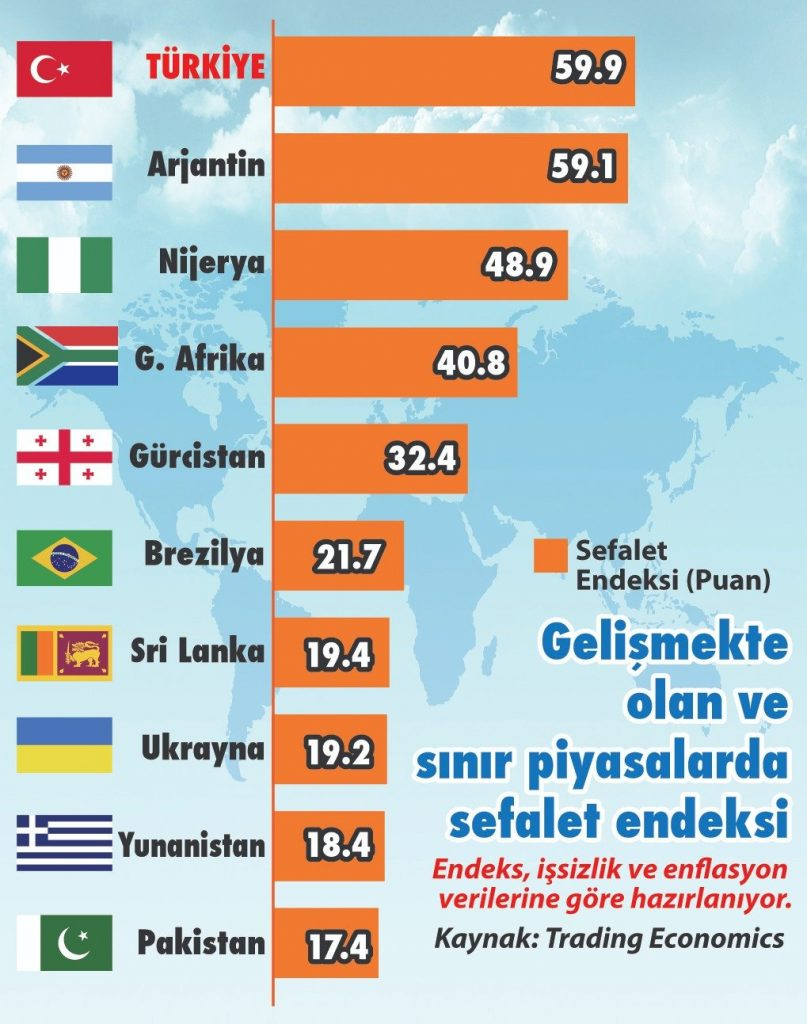Türkiye 93.3 puanla Sefalet Endeksi’nde dünya birincisi oldu