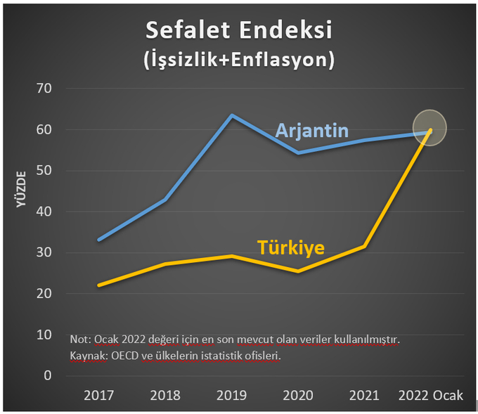 Türkiye’nin sefalet endeksi puanı, savaştan zarar görmüş Ukrayna’nınkinden daha kötü, Rusya’nın sefalet endeksi puanı Türkiye’den daha iyi.