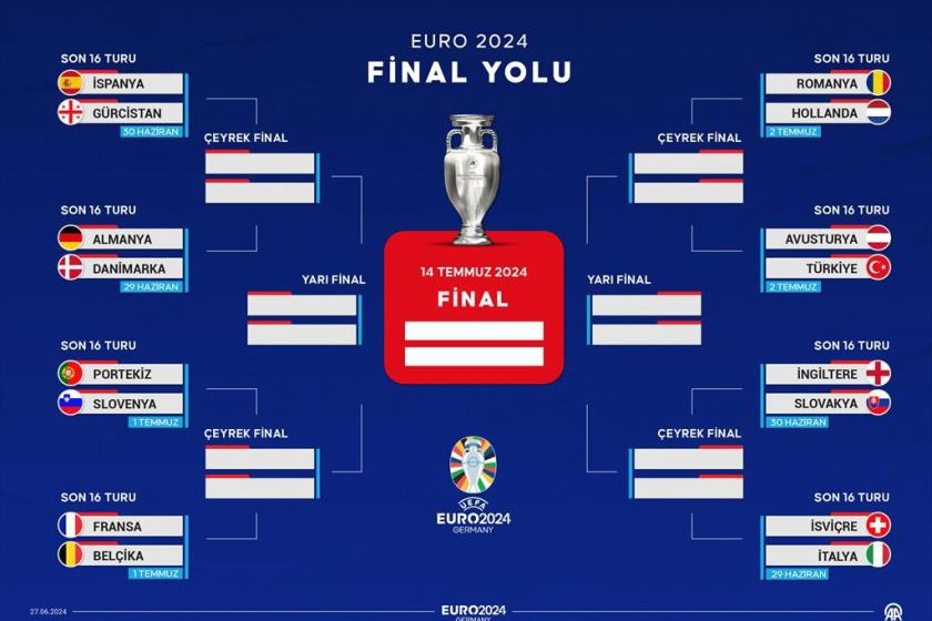 Almanya'nın ev sahipliğinde düzenlenen 2024 Avrupa Futbol Şampiyonası’nda grup maçları sona erdi. Karşılaşmalar sonunda dörderli 6 grupta mücadele eden 24 takımdan 16'sı yoluna devam etme hakkı elde etti.