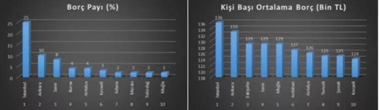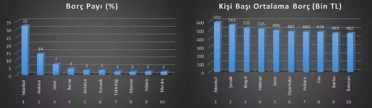 İl sıralamasında İstanbul ilk sırada yer alırken; Ankara, İzmir ve Bursa onu izliyor. Antalya, Kocaeli, Adana, Mersin, Tekirdağ ve Gaziantep gibi sanayi ve hizmet sektörlerinin yoğunlaştığı illerde KMH kullanımının yaygınlaşması, ücretli emeğin borçla dengelenmeye çalışıldığını gösteriyor.