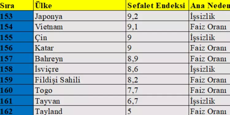 En az sefalet yaşayan ülkeler arasında ayrıca İsviçre, Bahreyn, Katar, Çin, Vietnam ve Japonya gibi farklı ekonomik yapılara sahip ülkeler de yer alıyor. Bu çeşitlilik, düşük sefaletin tek bir ekonomik modele değil; fiyat istikrarı, istihdam ve öngörülebilir politika çerçevesinin birlikte sağlanmasına bağlı olduğunu gösteriyor.
