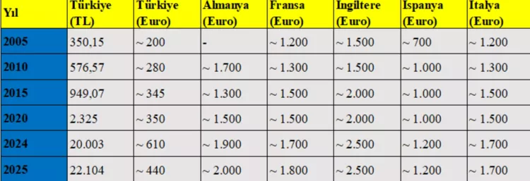 Euro cinsinden dönemsel yükselişlere rağmen, yüksek enflasyon ve artan yaşam maliyetleri asgari ücretlinin reel kazancını hızla aşındırıyor. Sonuç olarak tablo, Türkiye’de asgari ücretin Avrupa’ya kıyasla yalnızca düşük düzeyde kalmadığını; aynı zamanda kur ve enflasyon şoklarına açık, gelir güvencesi zayıf bir yapıya sahip olduğunu gösteriyor. Buna karşılık Avrupa ülkelerinde asgari ücret, daha öngörülebilir ve koruyucu bir gelir aracı olarak işlevini sürdürüyor.